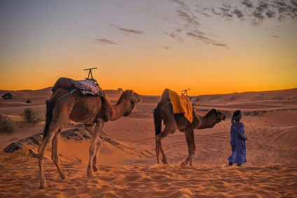 The camel trek duration to the camp over the Erg Chebbi spans 45 minutes to 1 hour. It depends on which 5 day desert tour package you book with us.